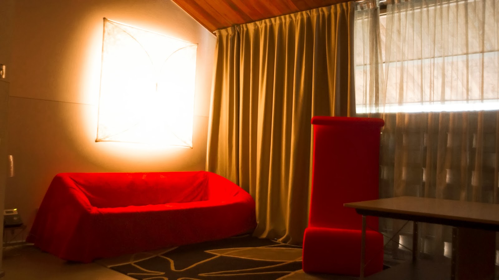 | Una poltrona originalissima con Mickey Mouse che sbuca a braccia aperte. |