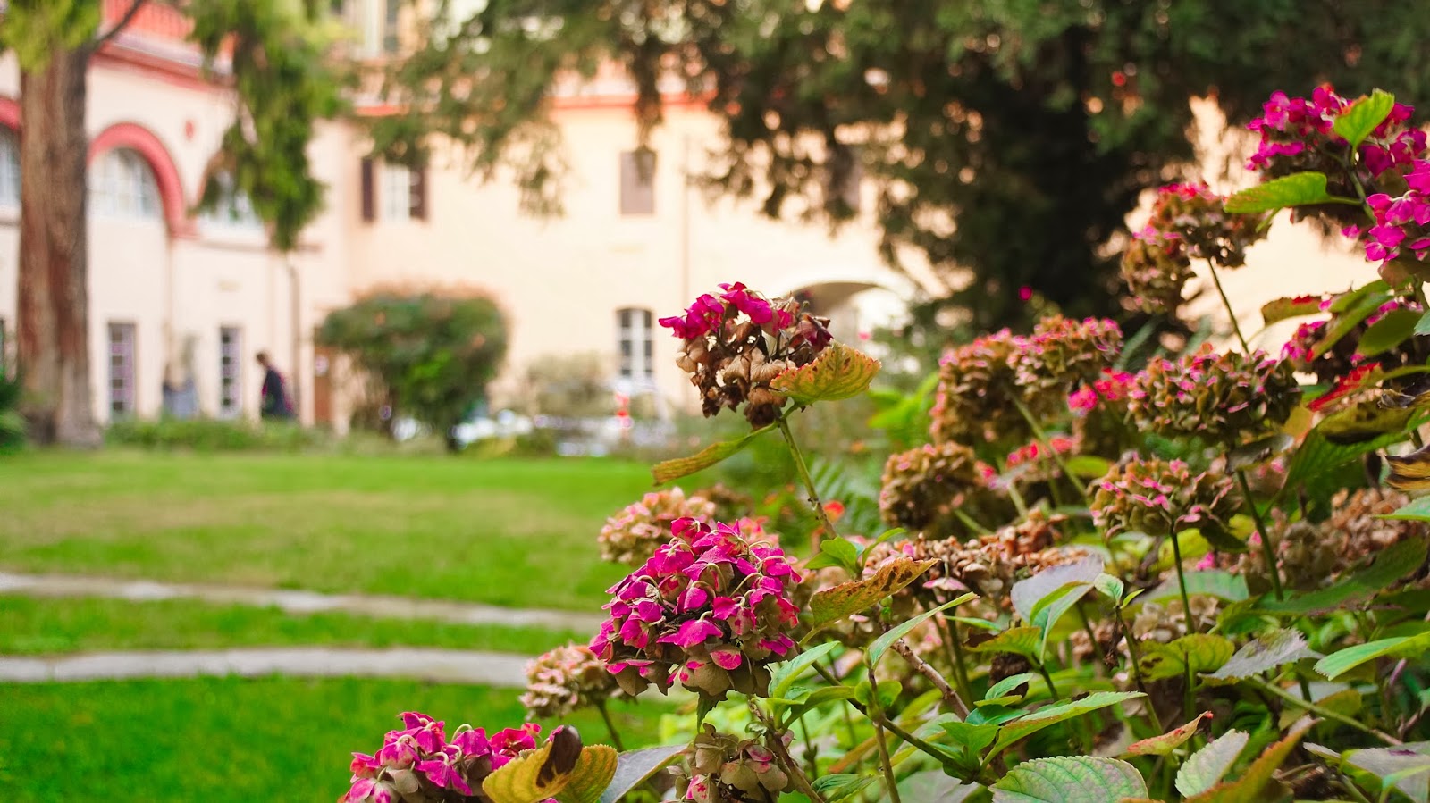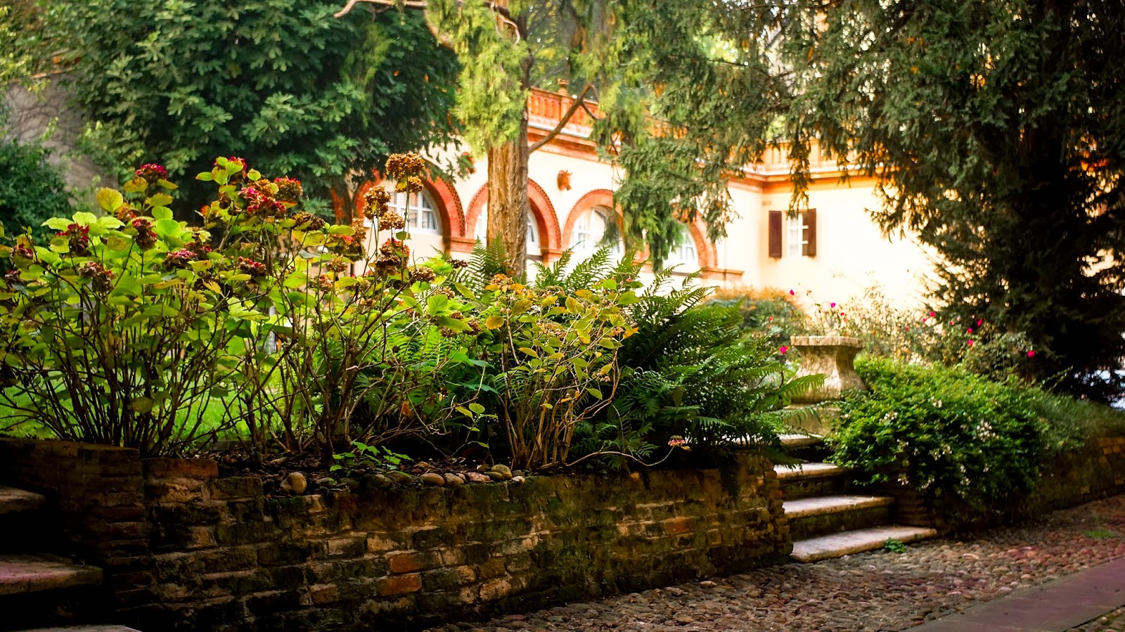 Il giardino di questo palazzo storico è un piccolo eden tenuto con grande cura.